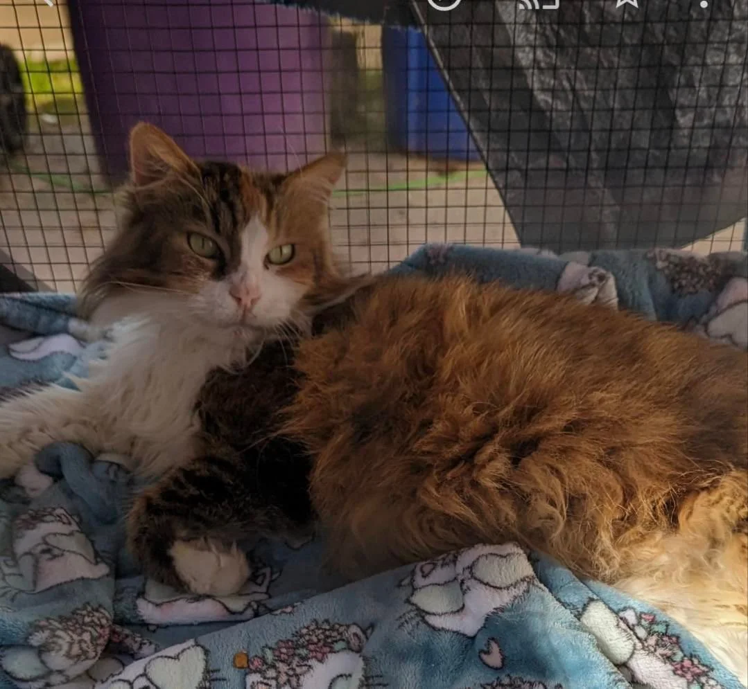 Nova was an indoor kitty that once had a home but was forced to live outside by former owners until they moved out and abandoned her... She’s approximately 10 years old.... forced to live in an area full of coyotes she managed to survive somehow. A wonderful person/ feeder that was concerned about her informed us and we dove into action. She's such a beautiful gal with a mean mug that doesn’t match her beautifully sweet and gently personality. She loves to be pet and snuggled, and really likes Easter eggs as toys. She can tolerate other cats but can come off as bossy. Either way she deserves a great home. Adopt Nova today!